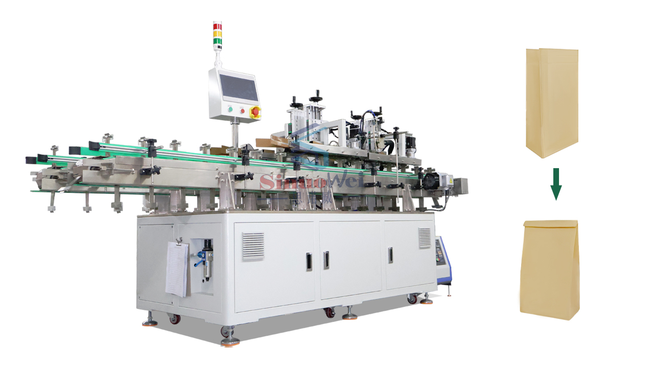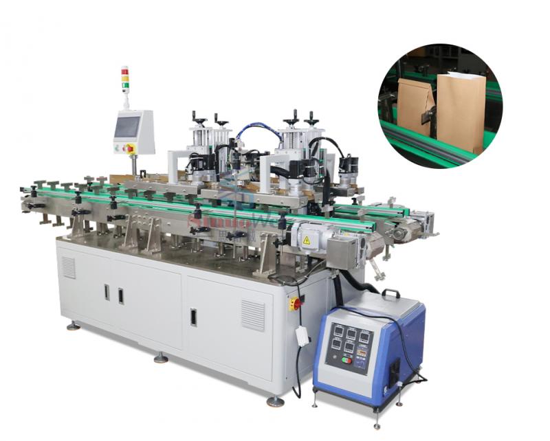 machine de pliage et de scellage des bords des sacs d'emballage alimentaire est spécialement conçu pour sceller les sacs d'emballage alimentaire. Elle assure une fermeture sûre et fiable grâce à l'application d'un adhésif thermofusible après deux pliages. Compatible avec une large gamme de formats de sacs d'emballage alimentaire, elle offre une grande adaptabilité.